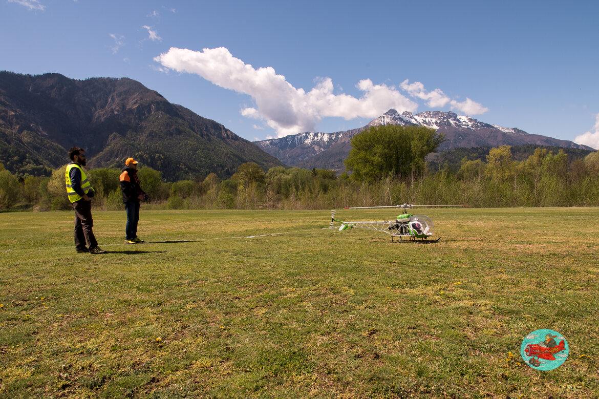 Elicotteri impegnati nelle riprese del Giro d'Italia durante la Tappa Ponte di Legno _ Lavarone sono stati parcheggiati presso la Pista del GAVS di Levico Terme.